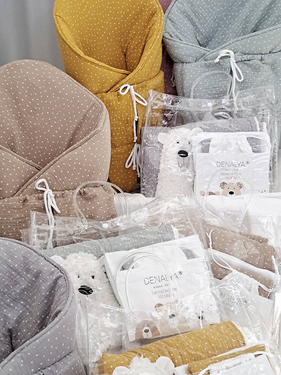 1. u zákazníkov obľúbenú "tuľkaciu" mušelínovú deku s hrejivým a jemným barančekom.Deká má všestranné využitie a možnosť využiť aj do 2rokov. Rozmer 65x90cm. 100%bio bavlnený mušelín