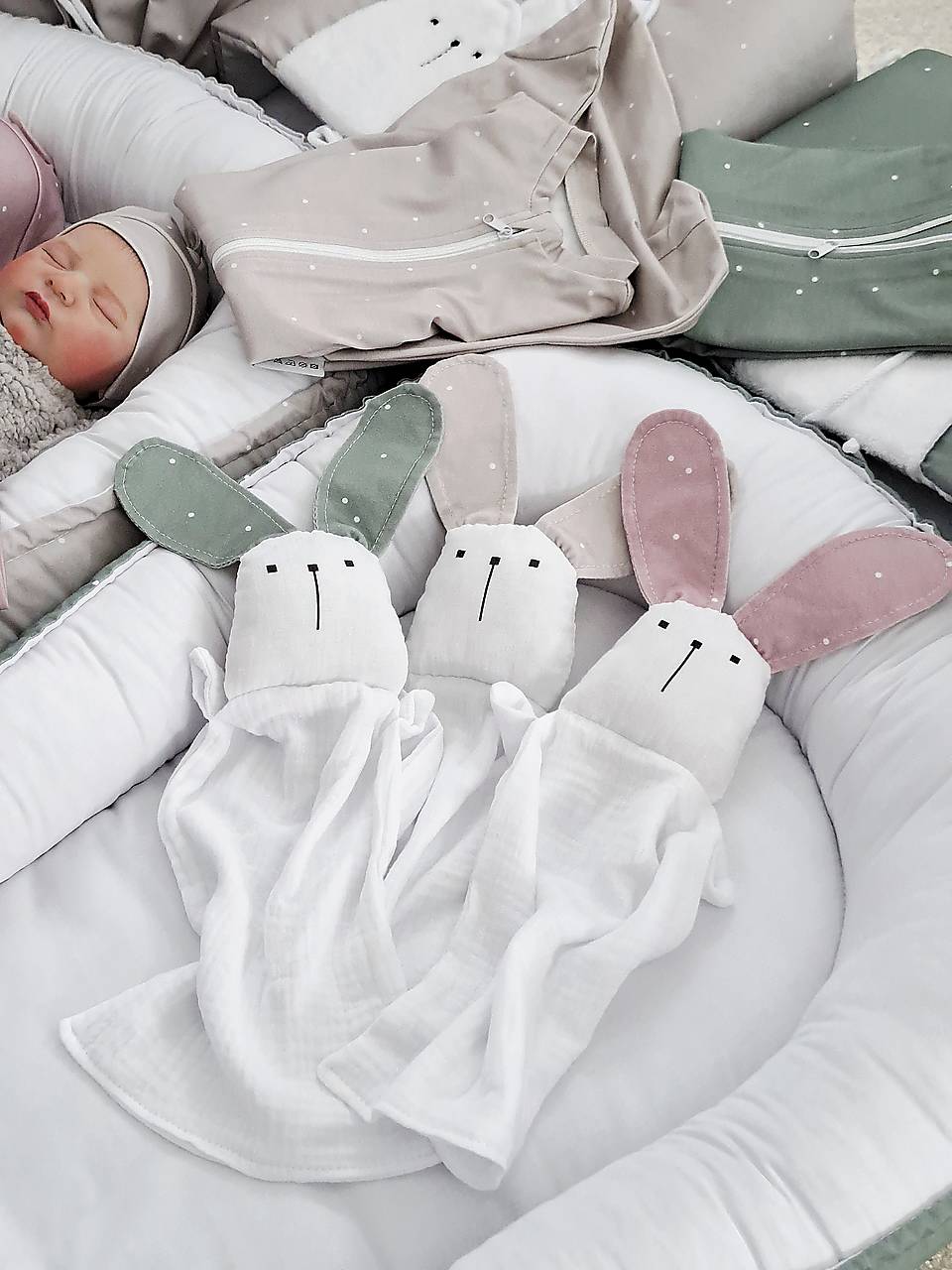 Úvod » Mušelínové mojkáčiky » Mušelínový mojkáčik Zajko » Mini mušelínový mojkáčik zajko biely pastel ružové ušká