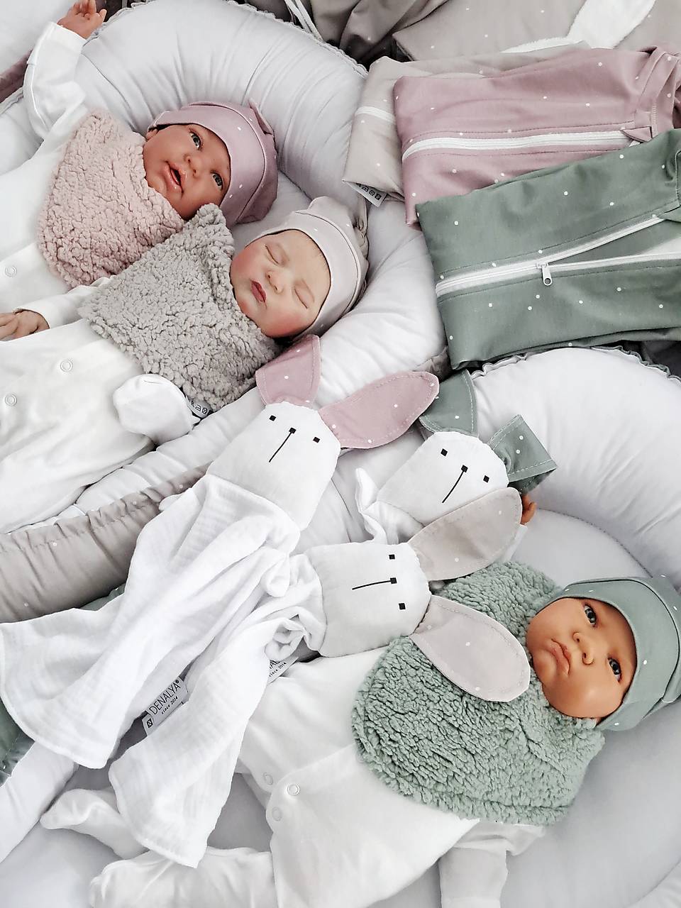 Úvod » Mušelínové mojkáčiky » Mušelínový mojkáčik Zajko » Mini mušelínový mojkáčik zajko biely pieskovo šedé ušká