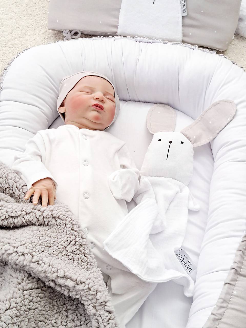 Úvod » Mušelínové mojkáčiky » Mušelínový mojkáčik Zajko » Mini mušelínový mojkáčik zajko biely zelené ušká