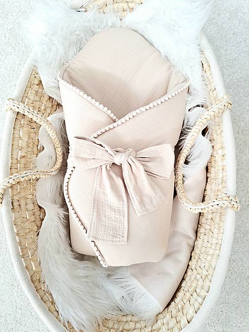 Úvod » Zavinovačky pre bábätká » Zavinovačka s mašľou » Mušelínová zavinovačka s mašľou svetlohnedá