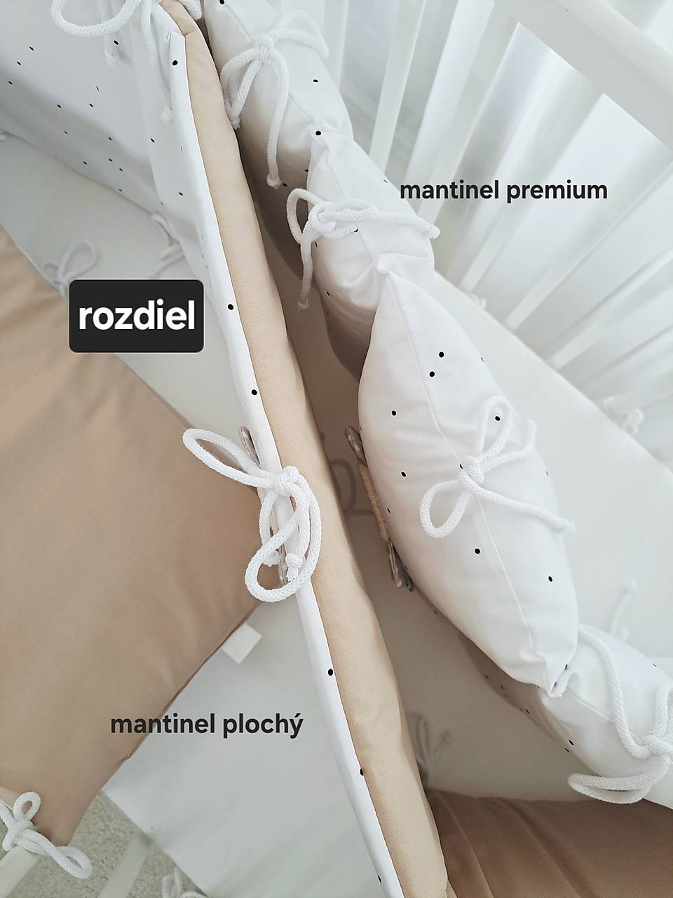 5. Mantinel PREMIUM do postieľky 240x30cm - zložený z 3 častí, 100% bavlna, výplň 400g hladený vatelín - obojstranne použiteľný ( v prípade, že Vám veľkosť mantinelu nesedí a potrebovali by ste pre postieľku 140x70cm, napíšte nám a vytvoríme zvýhodnenú položku na želanie.)