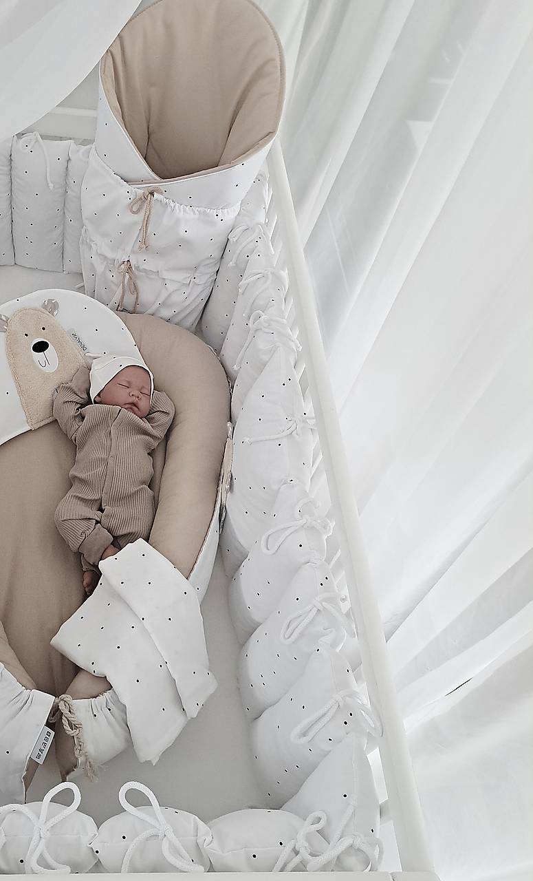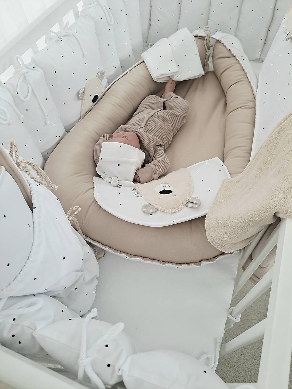 Úvod » Sady do detskej postieľky » Sada do detskej postieľky latte a bodky s mackom