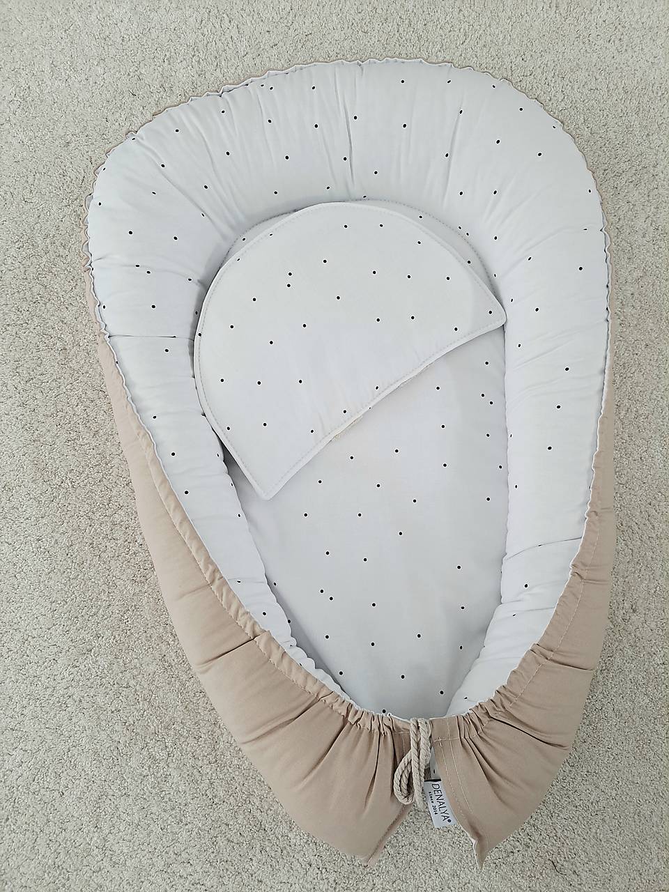 1. Hniezdo pre bábätko 100% bavlna - obojstranne použiteľné, otočíte si na stranu, ktorá Vám vyhovuje,tak ako všetky naše hniezda sú obojstranné