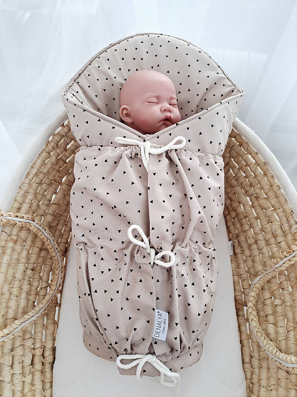 2. Bavlnená zavinovačka 70x70cm s viazanín na 3 bavlnené šnúrky, zloženie: 100% bavlna, výplň 400 g hladený vatelín
