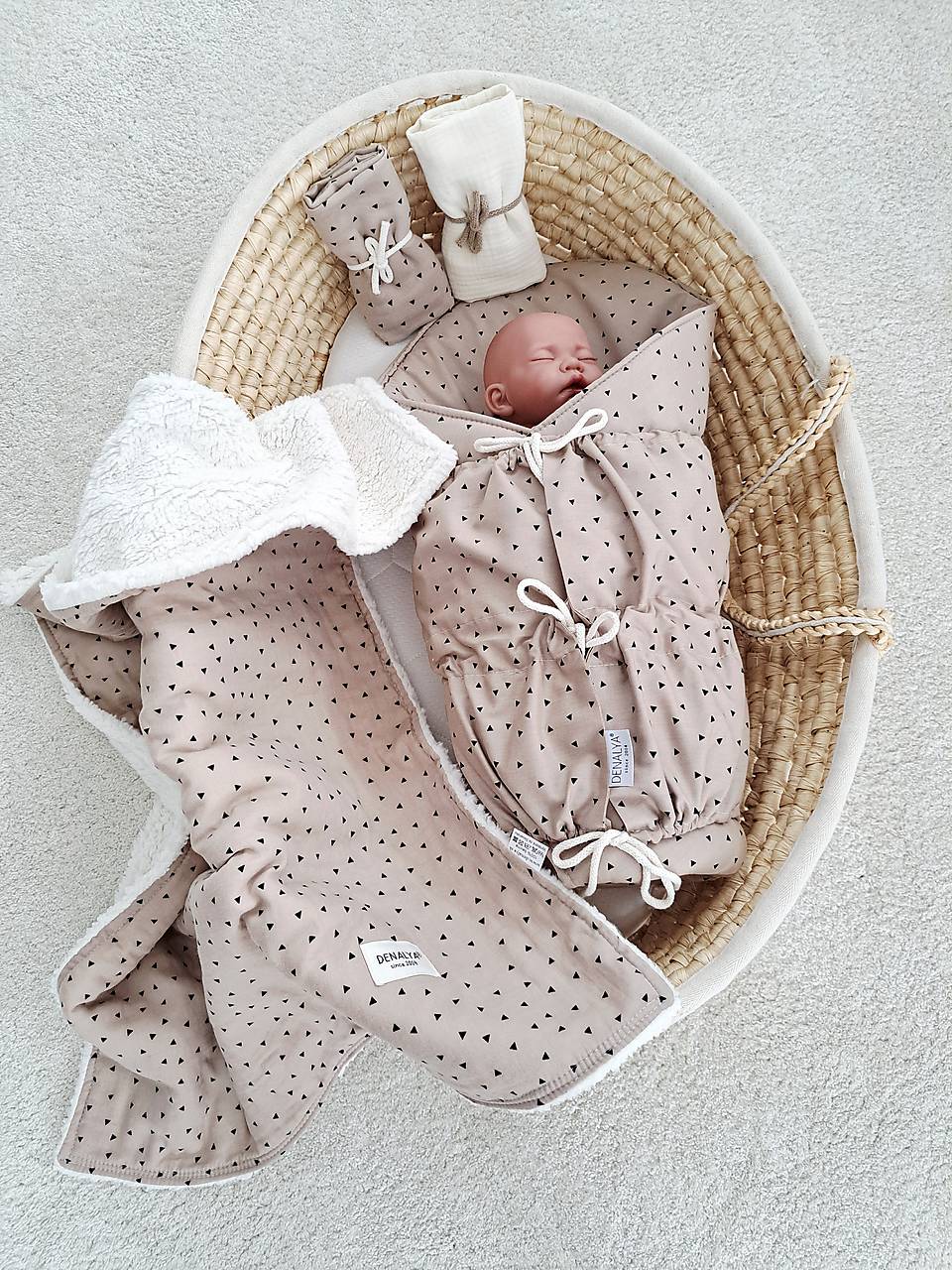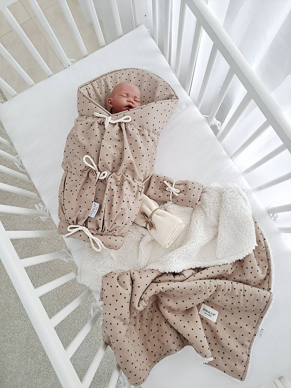 1. Mušelínová tuľkacia deka 65x90cm - dvojvrstvová - vrchná strana 100% mušelín, zadná strana off white baranček ,vhodná na zimné a prechodné obdobie