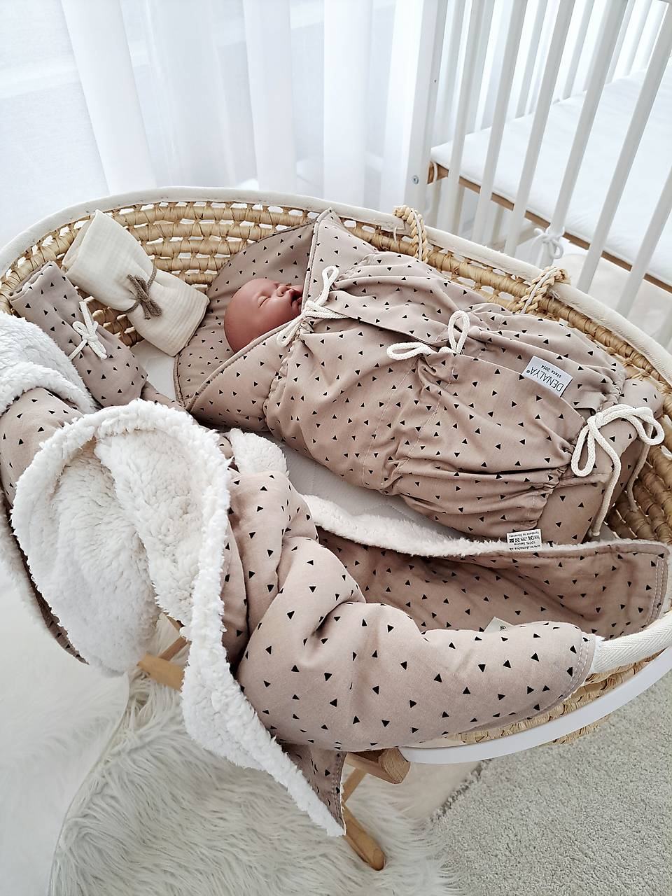 Úvod » Súpravy pre bábätko 3v1 » Sada do detskej postieľky pre bábätko čierne trojuholníky a krémová