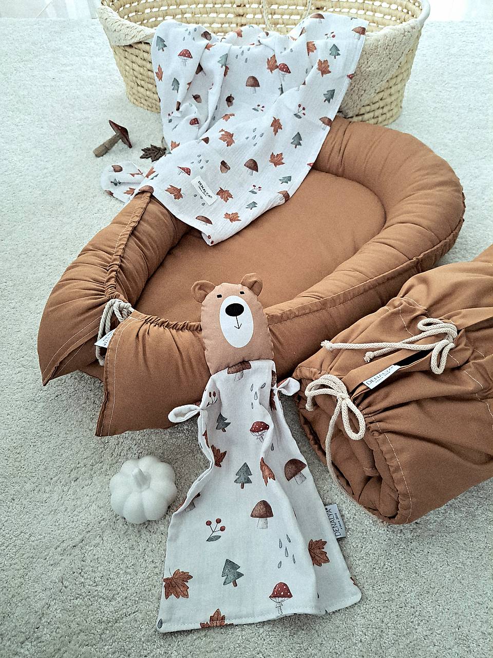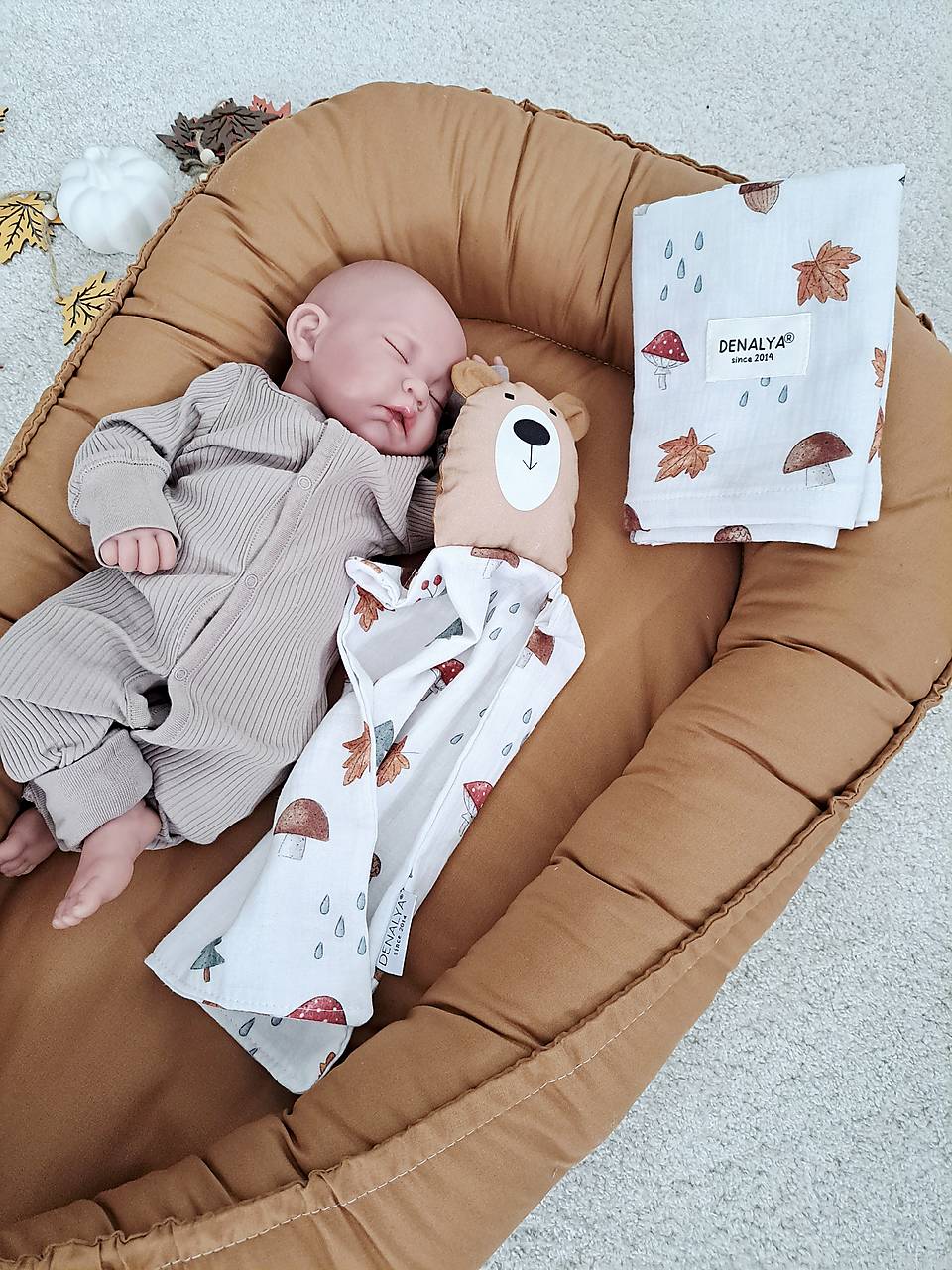 Každé naše hniezdo je obojstranné, čiže si ho môžete otočiť a previazať na tú stranu, ktorá Vám vyhovuje. Je vyrobené z kvalitných materiálov ako sú 100% bavlna alebo 100% bavlnený mušelín, majú certifikát: STANDARD 100 od OEKO-TEX® , okraje ( bočnice) sú vyplnené antialergickým rúnom a plocha na spanie je vyplnená 400 g hladeným vatelínom.