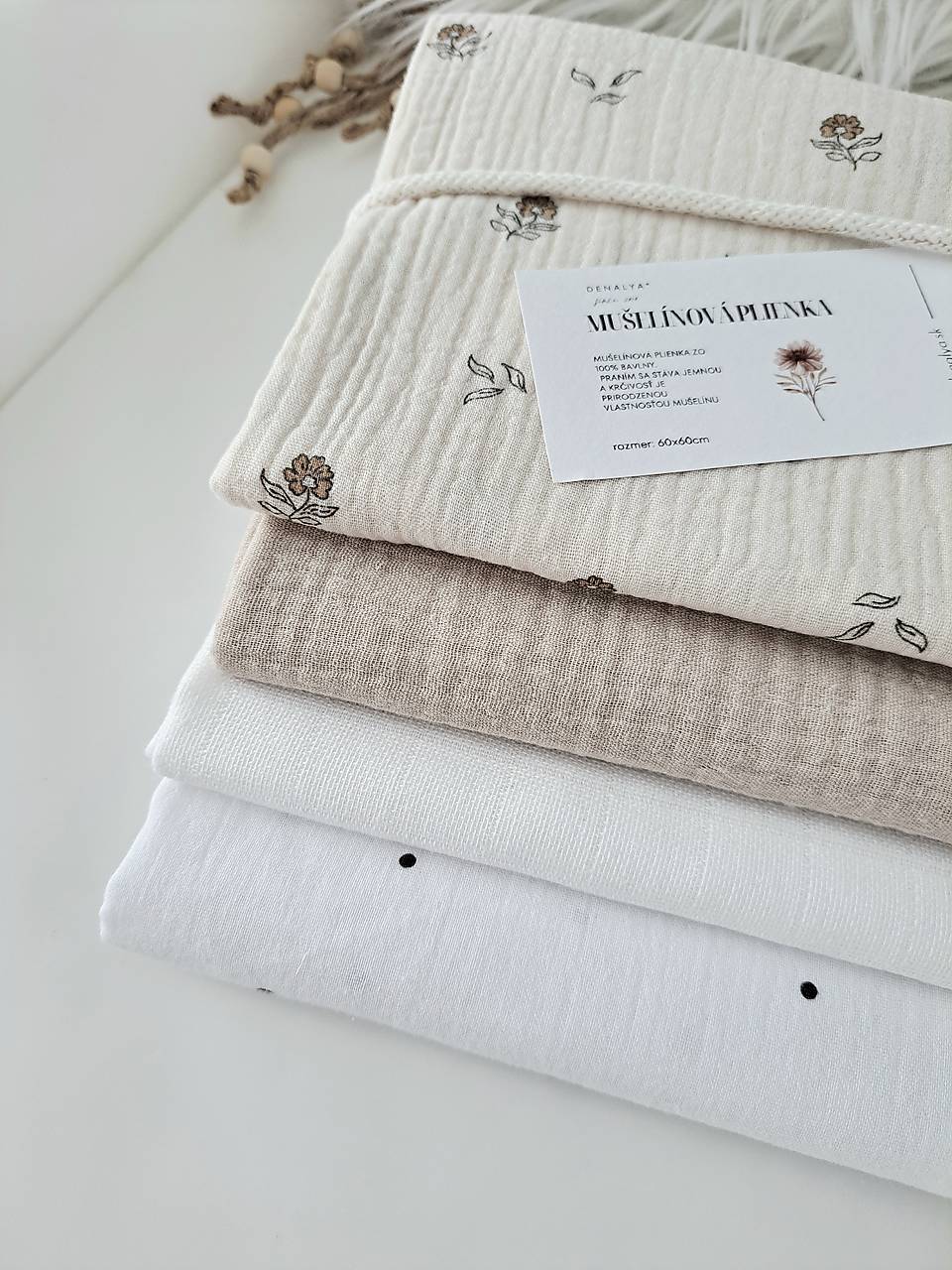 Úvod » Mušelínové plienky » Sada mušelínových plienok » Sada mušelínových a bavlnených plienok
