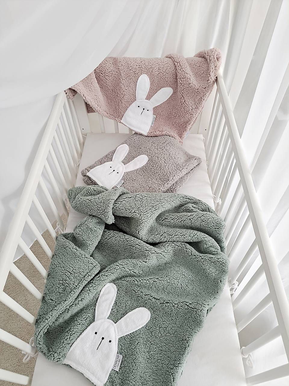 3. Hrejivá deka obojstranne baranček s bielym zajkom. Baranček je fleece, iminácia ovčieho rúna a je jemný,tuľkací,hrejivý