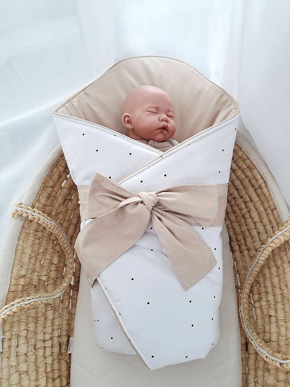 Úvod » Zavinovačky pre bábätká » Zavinovačka s mašľou » Zavinovačka s mašľou béžová a bodky