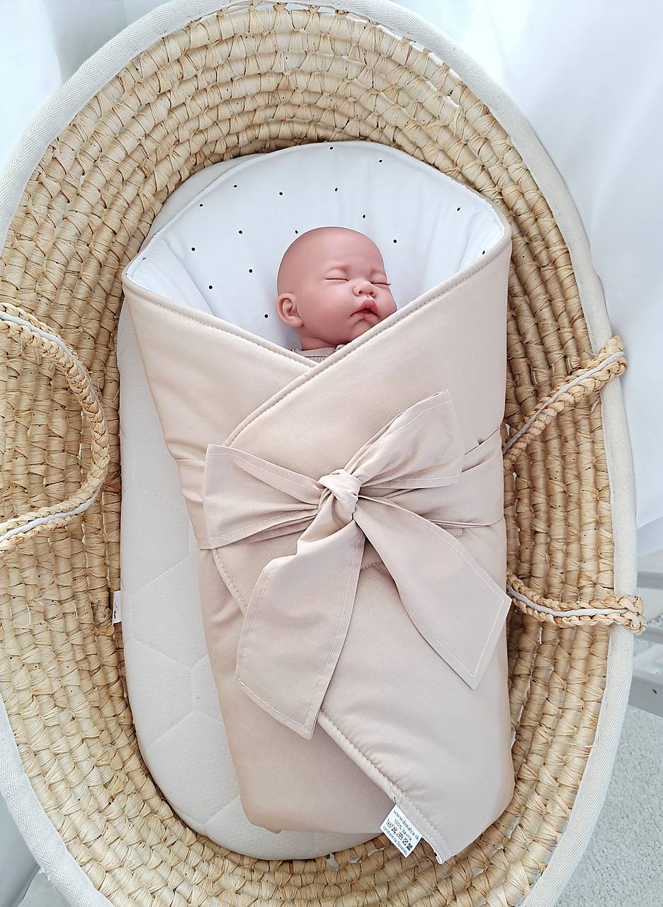 Úvod » Zavinovačky pre bábätká » Zavinovačka s mašľou » Zavinovačka s mašľou latte béžová a bodky