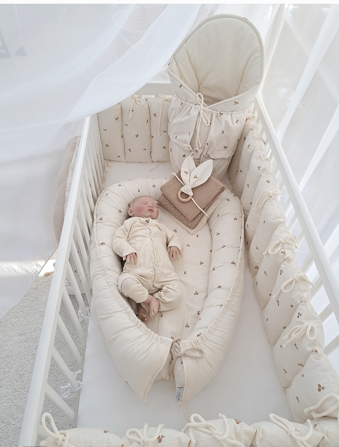 Sada 3 v 1 „Natural“ — bavlnené hniezdo, zavinovačka s viazaním a mantinel do postieľky v prírodnom, jemnom odtieni Natural. Každý kúsok je ušitý z kvalitnej 100 % bavlny, s dôrazom na bezpečnosť, pohodlie a estetiku detskej izbičky. Hniezdo objíme bábätko ako v maminom náručí, zavinovačka s viazaním mu poskytne pokojný spánok a mantinel „obklopí“ postieľku jemnou ochranou. Starostlivosť je jednoduchá — všetko je možné prať na 40 °C. Denalya – výbava, ktorá myslí na mamičku aj dieťatko.